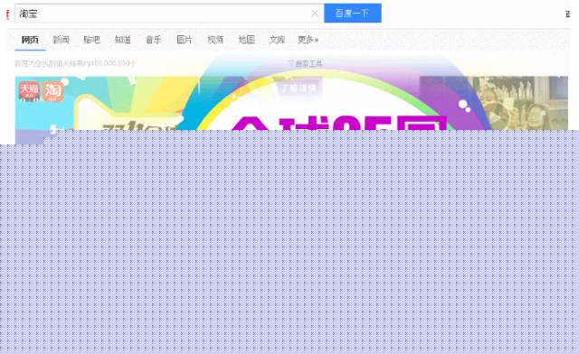 在浏览器中输入“淘宝”或“天猫”进行搜索时就会自动弹出双十一的打折信息,更可怕的是它们都带动态特效,那视觉冲击力也是大大的。