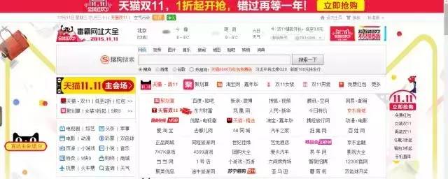 无论你用金山导航、hao123导航、QQ导航、还是搜狐导航、新浪导航都不可能看不到这铺天盖地的双十一打折广告。