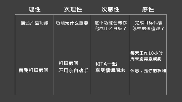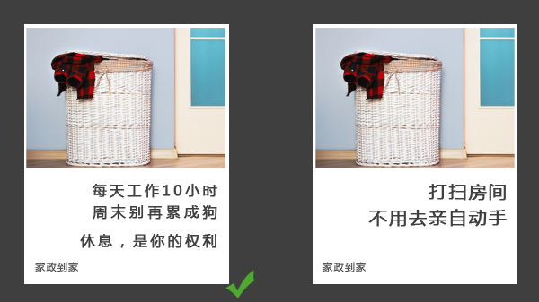 反之,如果你的产品特点,大家非常容易相信。营销的重点在于唤起购买的动机。那么就应该用感性脑作为切入点。就像家政服务,偏感性文案更合适。