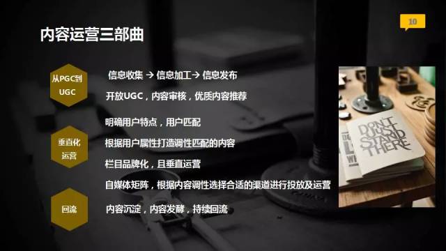 其中比较核心的部分是内容和用户的运营,这两块决定了你是否能抓住用户并且留下他。在这个内容泛滥的新媒体时代,内容同质化相当严重,因此好的内容尤其可贵,它决定了你的点击量,以及带来的传播价值和商业价值。