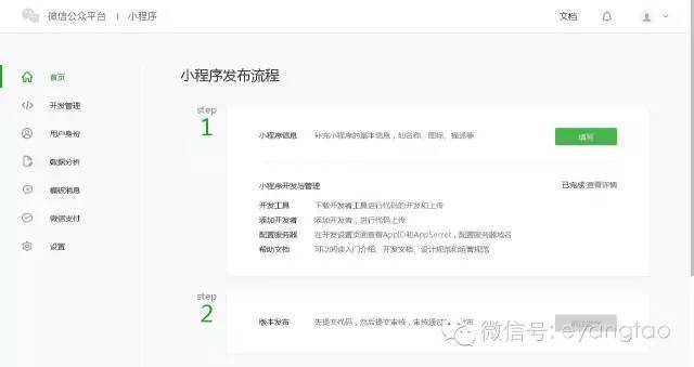 最后是接入流程,只要按照注册→小程序信息完善→开发小程序→提交审核和发布的步骤走就行。