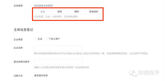 那么到底如何注册呢?首先微信小程序的开放注册范围只包括了企业、政府、媒体和其他组织,个人微信公众号没法申请注册。