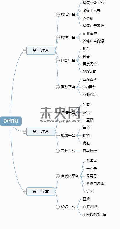 第一阵营新媒体包括:微信平台、新浪微博平台、问答平台、百科平台。这四类平台是大中小互联网金融企业都需要深耕的新媒体平台。