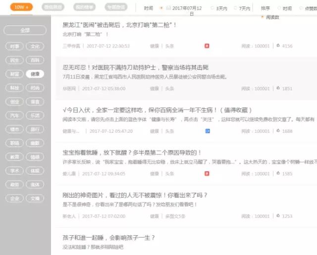 这些爆文也好找,上面那些平台都会有显示各个行业爆文,排名靠前文章均为阅读量10W+的爆文,你要找什么类别的就选择对应分类,然后选择和你账号比较匹配的爆文。